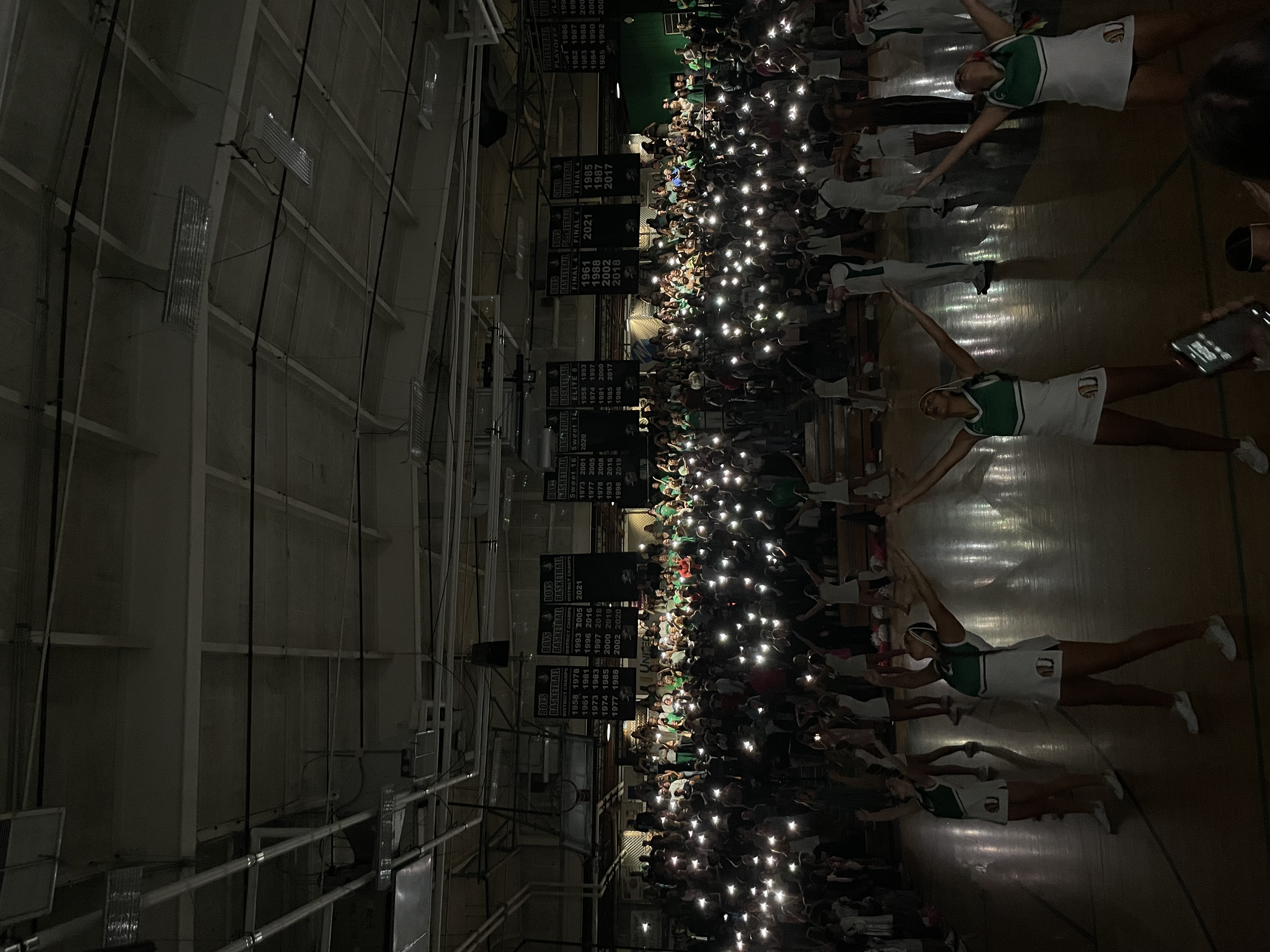 Pak přichází Pep Rally, která má dvě hodiny. Normální má jenom jednu, takže tohle bylo neskutečně dlouhé. Byla to vlastně skoro normální Pep Rally až na pár věcí — hodně času se věnovalo Homecoming Courtu a Alumni.