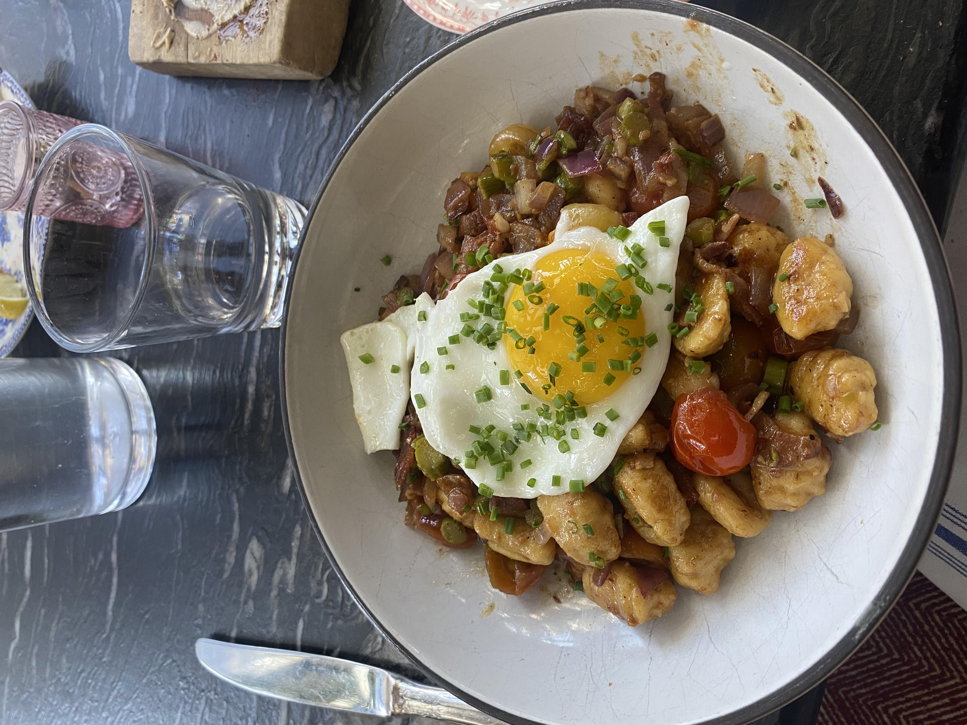 Na oběd jsme zašli do restaurace, kterou jsme měli vyhlédnutou už docela dlouho, Beatnik on the River, která se nachází - uhodli jste to správně - na řece. Restaurace má středomořský “vibe”, přes jídlo na menu až po interiér. Jídlo bylo opravdu vynikající a hlavně teplé, což je tady opravdu potřeba, protože si už ani nepamatuju, kdy mi bylo naposledy venku opravdu teplo (i když tento víkend se teda otepluje :)). Měli jsme výhled na řeku i na “L”(zkratka pro elevated), což je chicagská ikonická tramvaj.